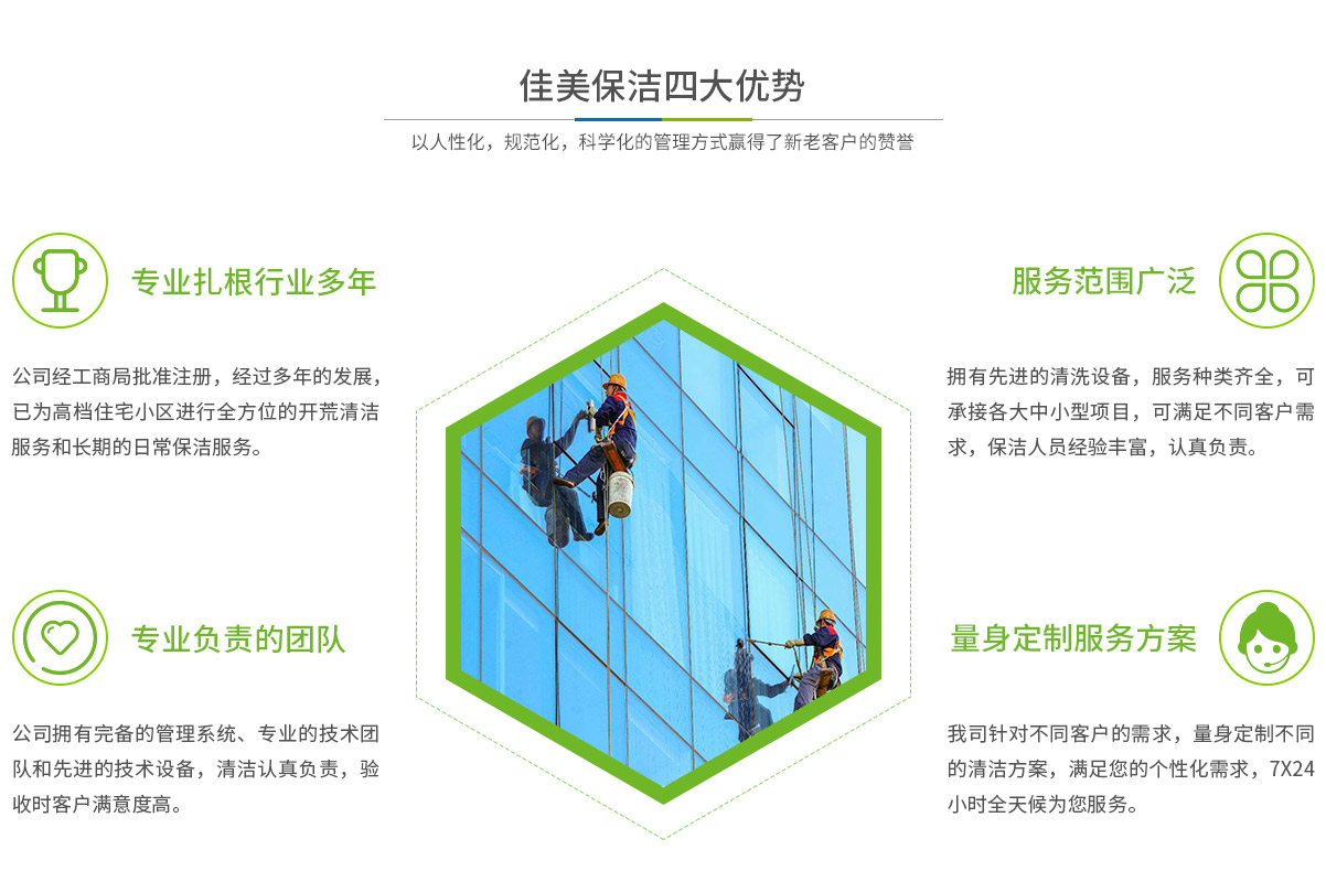- 馬鞍山市佳美保潔服務(wù)有限公司是一家經(jīng)工商部門(mén)批準(zhǔn),具有法人資格專(zhuān)業(yè)清洗,馬鞍山保潔服務(wù)的公司,自創(chuàng)辦以來(lái),一直致力于企業(yè),家庭,賓館,學(xué)校,別墅,酒店,商廈,公共設(shè)施等場(chǎng)所提供科學(xué)的日常保潔和清潔保護(hù)的服務(wù)公司,有著豐富的管理服務(wù)和保潔經(jīng)驗(yàn)...